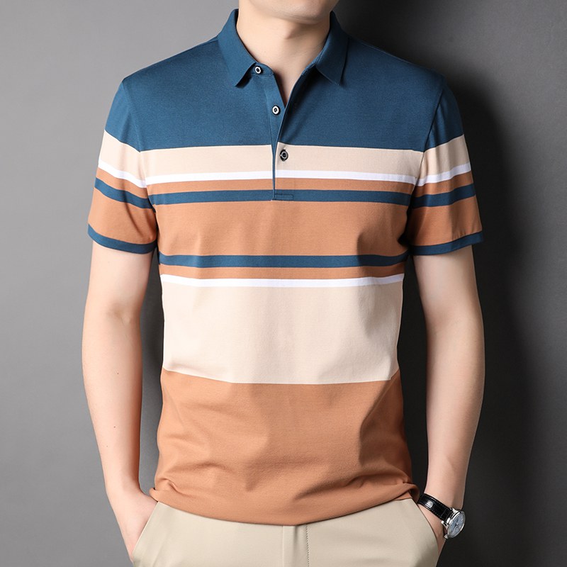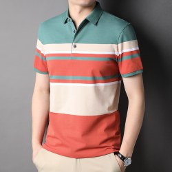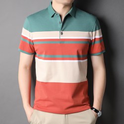 潮牌男士夏装纯棉透气条纹短袖T恤时尚休闲翻领POLO衫