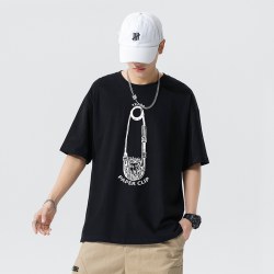 男士短袖t恤潮牌夏季宽松圆领港风纯棉上衣ins