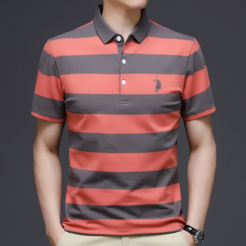 拉尔伦保罗男装夏季男士条纹Polo衫商务休闲短袖翻领t恤
