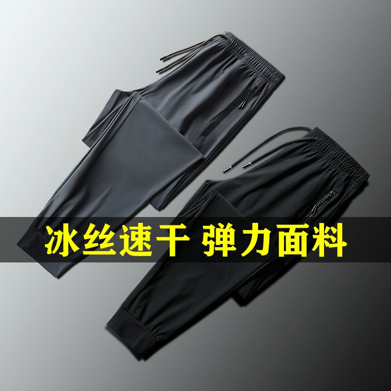 冰丝裤男士休闲裤夏季空调男裤薄款潮流运动宽松速干