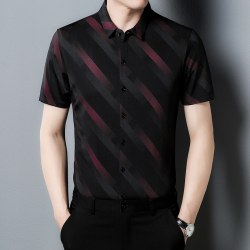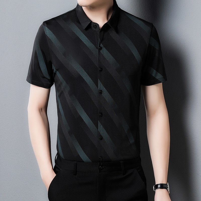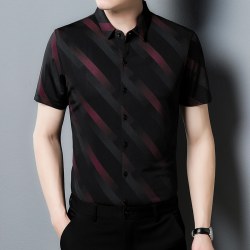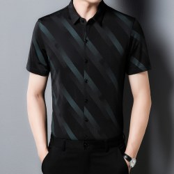 短袖衬衫男夏季新款中年男士时尚休闲免烫印花半袖翻领