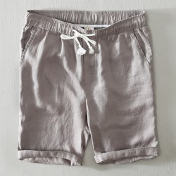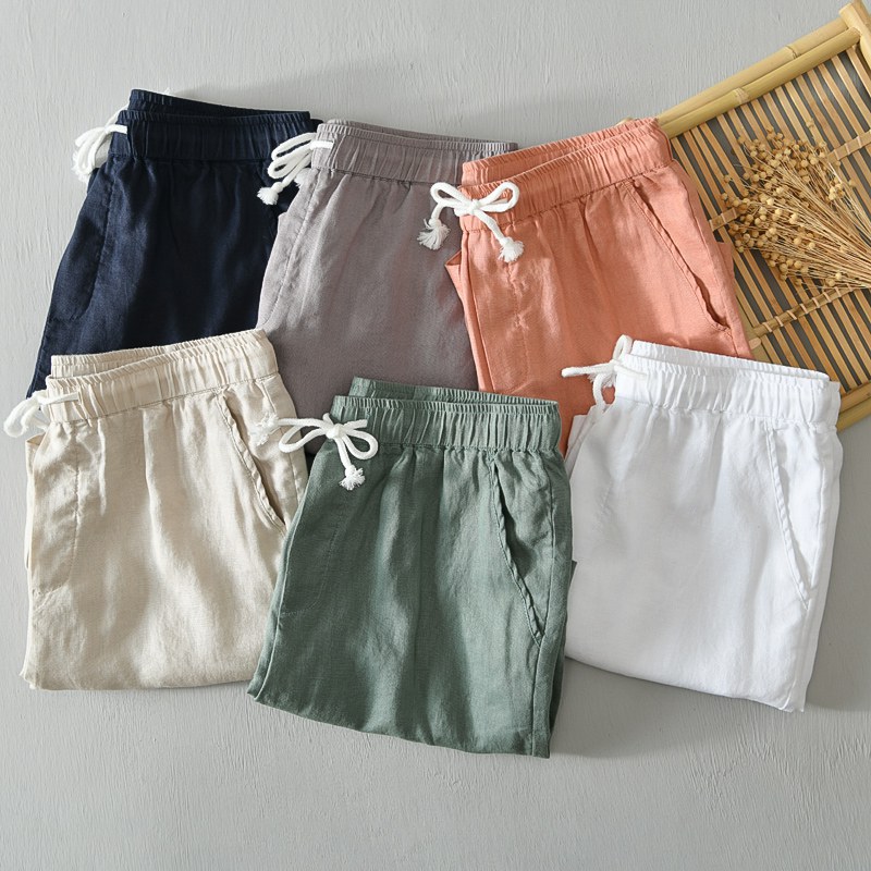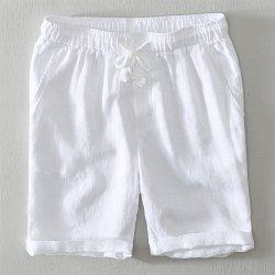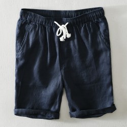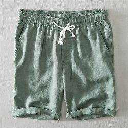 直筒抽绳短裤男士纯色休闲裤亚麻大码透气宽松沙滩裤