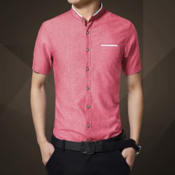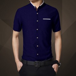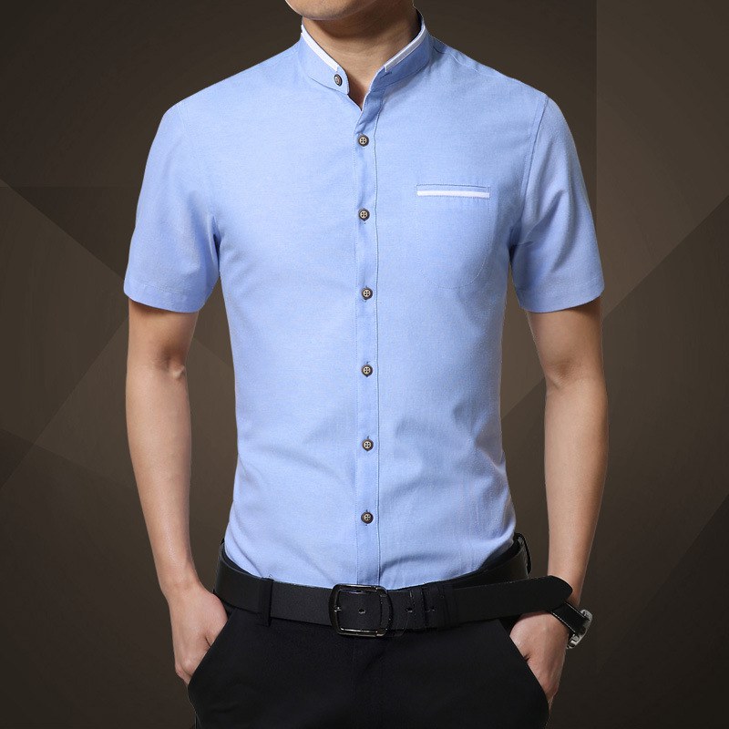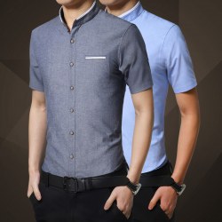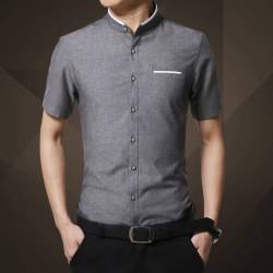 2022新款夏季立领短袖衬衫时尚休闲青春流行男士帅气衬衫