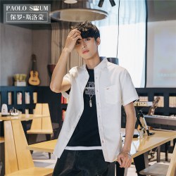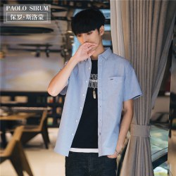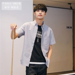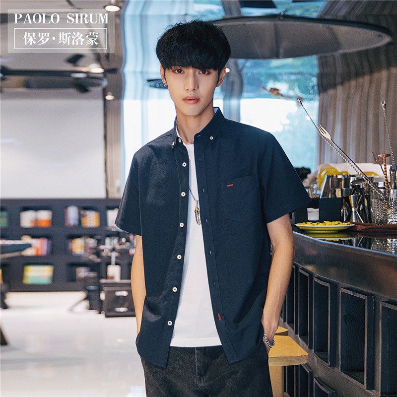夏季新款纯棉牛津纺衬衫男短袖青年休闲纯色男士衬衣