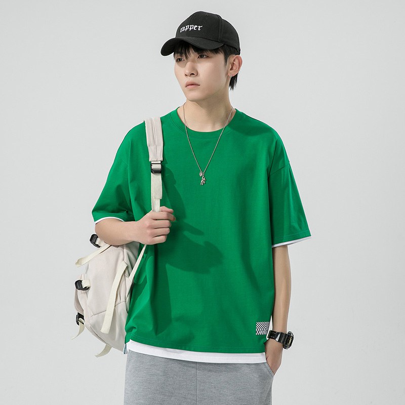 男装夏季新款短袖t恤男宽松版型学生休闲假两件