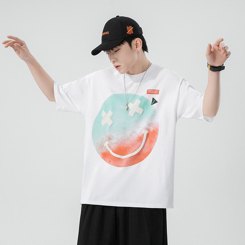 短袖印花t恤男夏季潮牌笑脸男士体恤潮ins