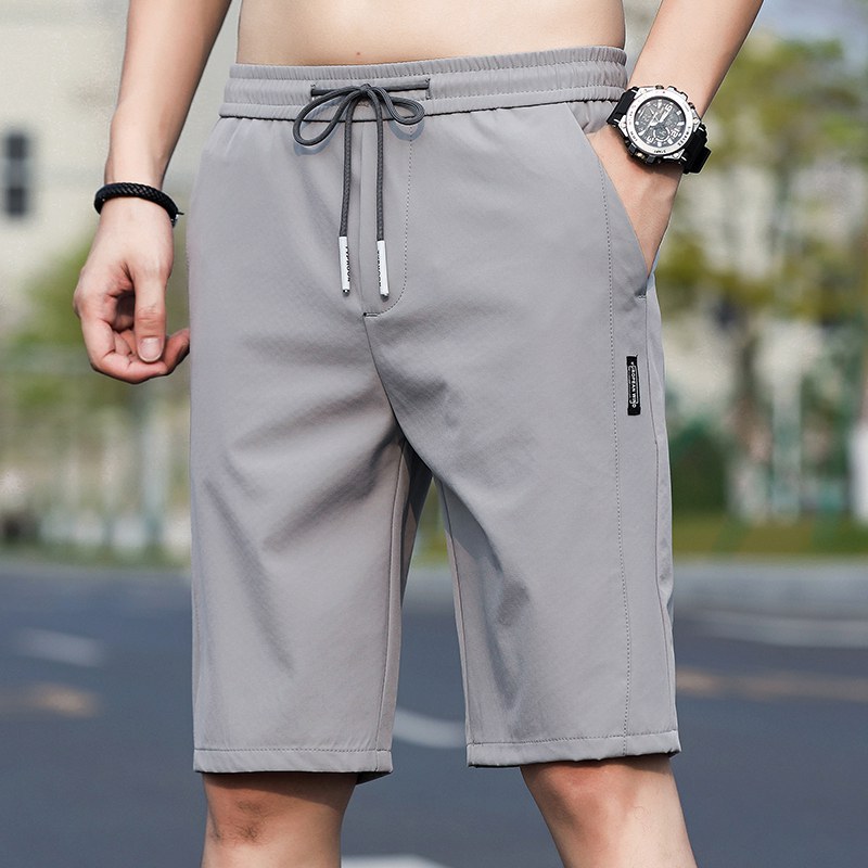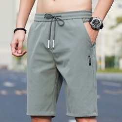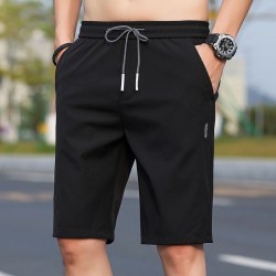 2022男士五分休闲裤子男款运动潮牌中裤修身短裤冰丝