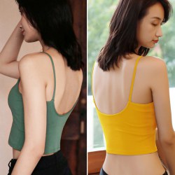 性感吊带背心短款外穿U型美背小吊带女装内搭带胸垫打底V领上衣
