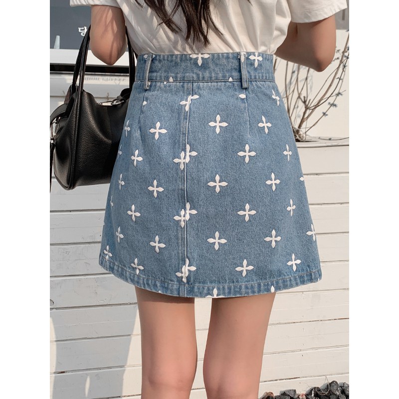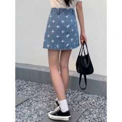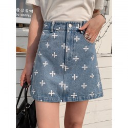 2022年夏季新款中腰宽松a字印花牛仔短半裙女