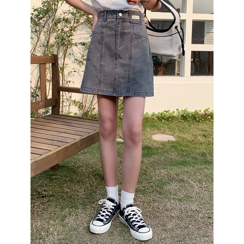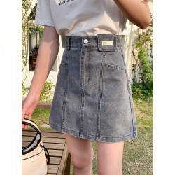 2022年夏季新款贴标口袋韩版宽松气质牛仔半裙女