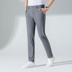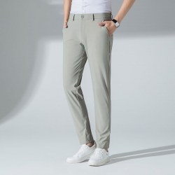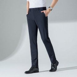 夏季薄款冰丝弹力面料直筒修身青年商务休闲裤男裤