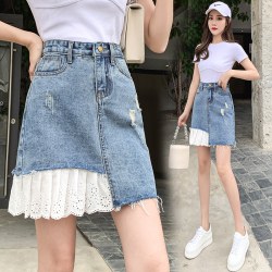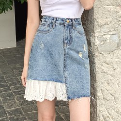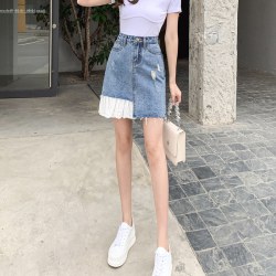 牛仔半身裙女夏季2022新款设计感高腰显瘦百搭短裙a字不规则裙