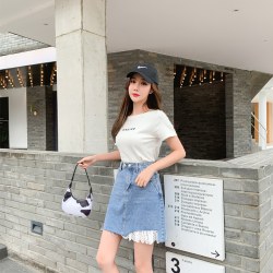 牛仔半身裙女夏季2022新款设计感高腰显瘦百搭短裙a字不规则裙
