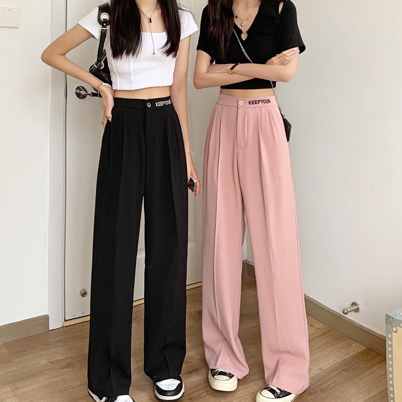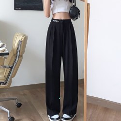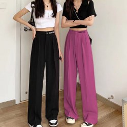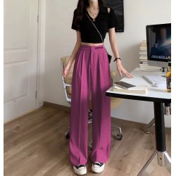 高腰冰丝阔腿裤子女春夏2022年新款垂感小个子休闲西装
