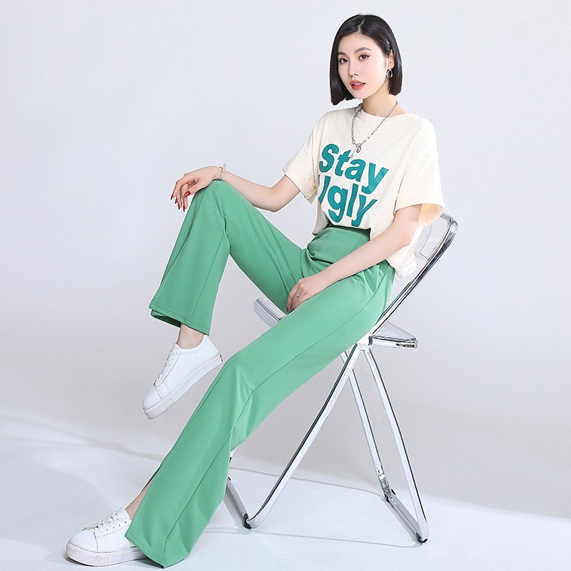 实拍2022春夏新款阔腿裤高腰垂感开叉拖地裤休闲裤