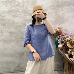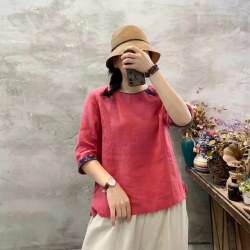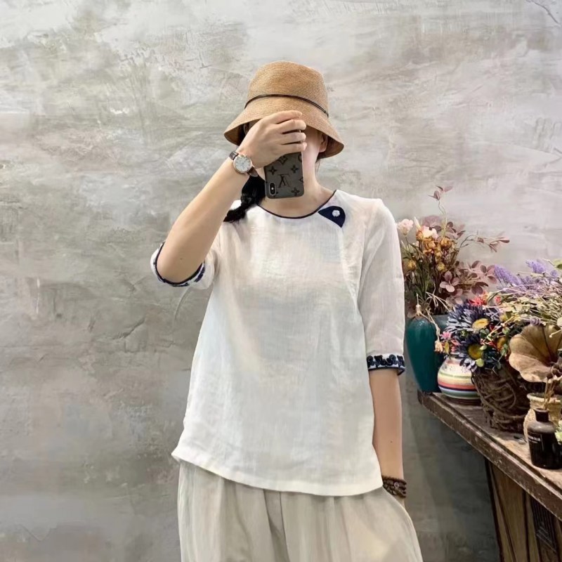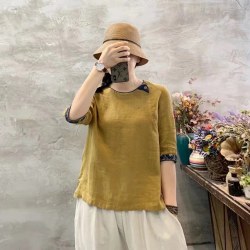 民族风刺绣亚麻女装春夏薄款复古上衣宽松显瘦休闲T恤2022新