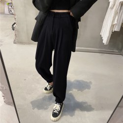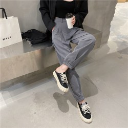 西装裤女2022胖mm春夏宽松束脚工装裤高腰显瘦休闲哈伦裤