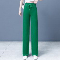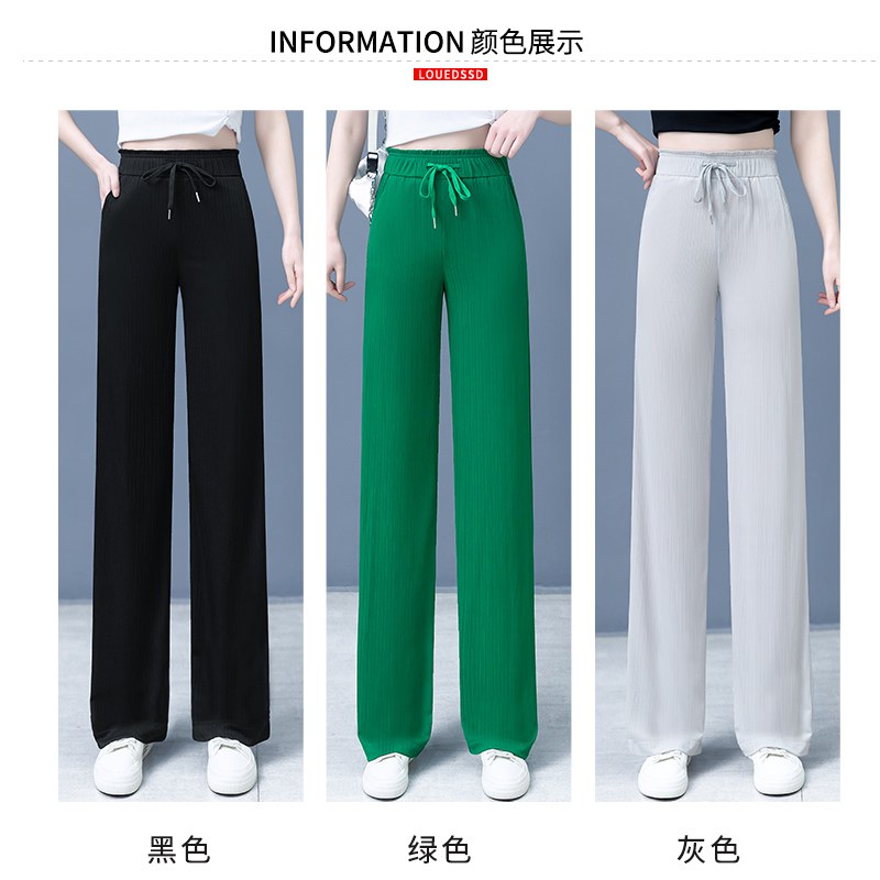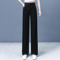 冰丝阔腿裤女夏季薄款裤子高腰垂大码女裤黑色直筒