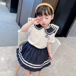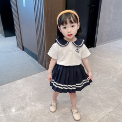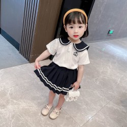 女童夏季套装2022新款日系学院风洋气百褶两件套