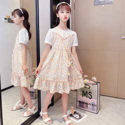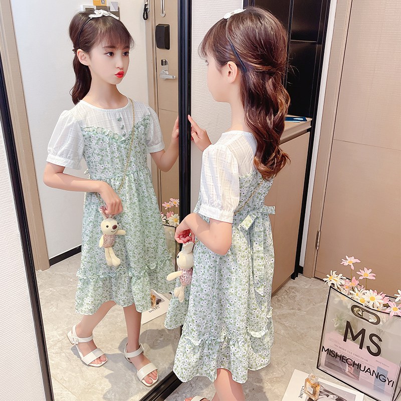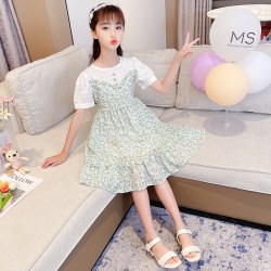 夏款新款连衣裙女孩泡泡袖中大童时尚碎花连衣裙儿童裙子
