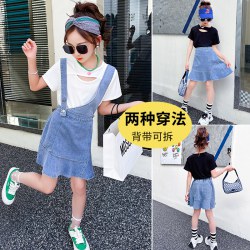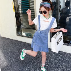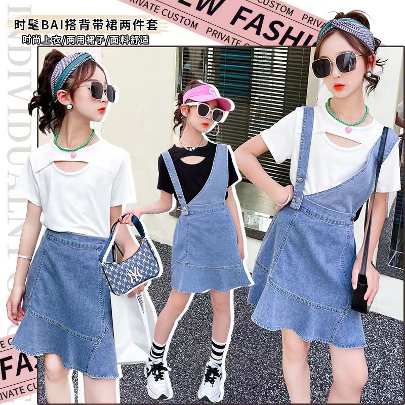 女童背带裙套装牛仔裙2022新款夏季儿童洋气时髦