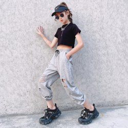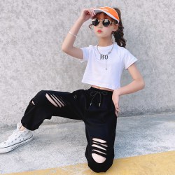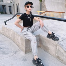 夏款套装2021新款T恤运动裤9女孩爵士舞演出服两件套