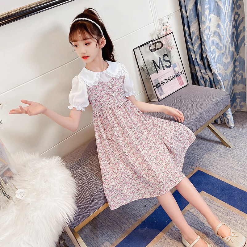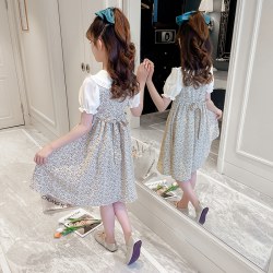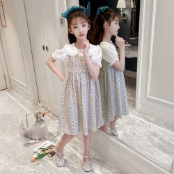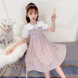 2022新款洋气女孩雪纺碎花裙子中大童网红潮
