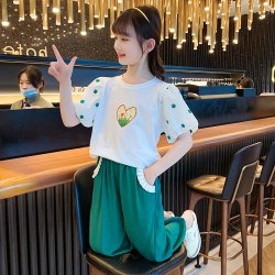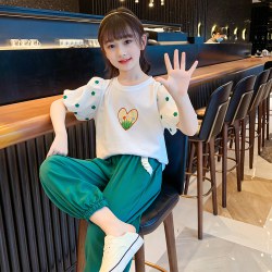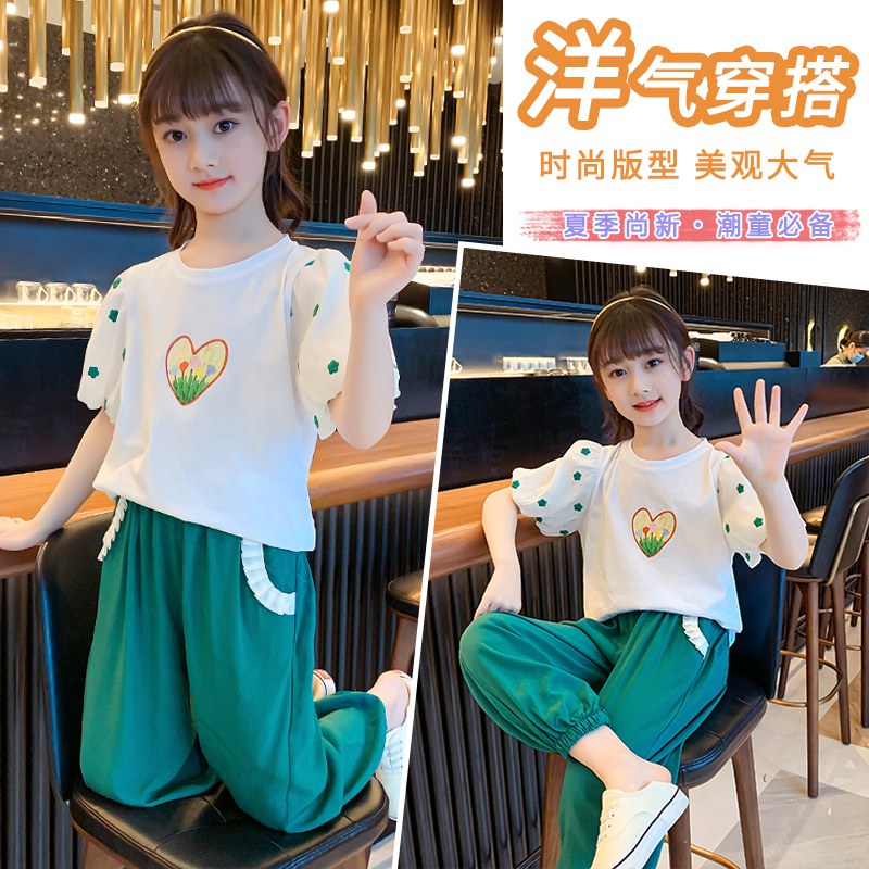 女童爱心花朵套装夏季新款中大童女宝宝韩版两件套