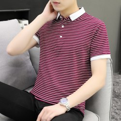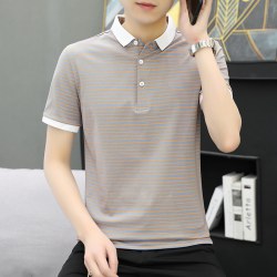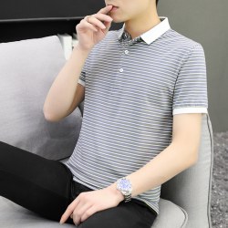 男士短袖条纹上衣翻领T恤夏季新款保罗polo衫