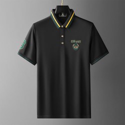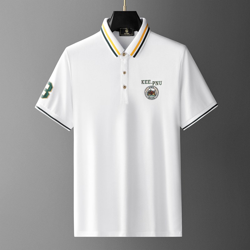 短袖t恤男春季新款中青年商务休闲珠地绵翻领条纹