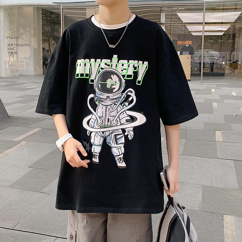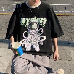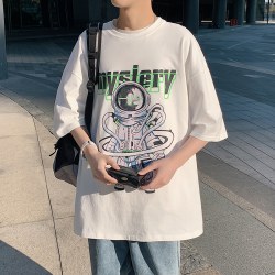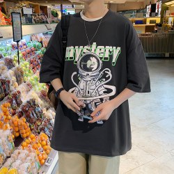 宇航员印花短袖t恤男士夏季纯棉新款潮流港风