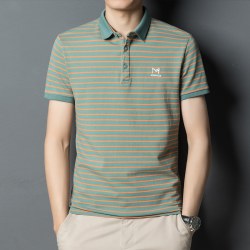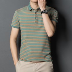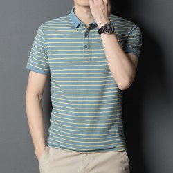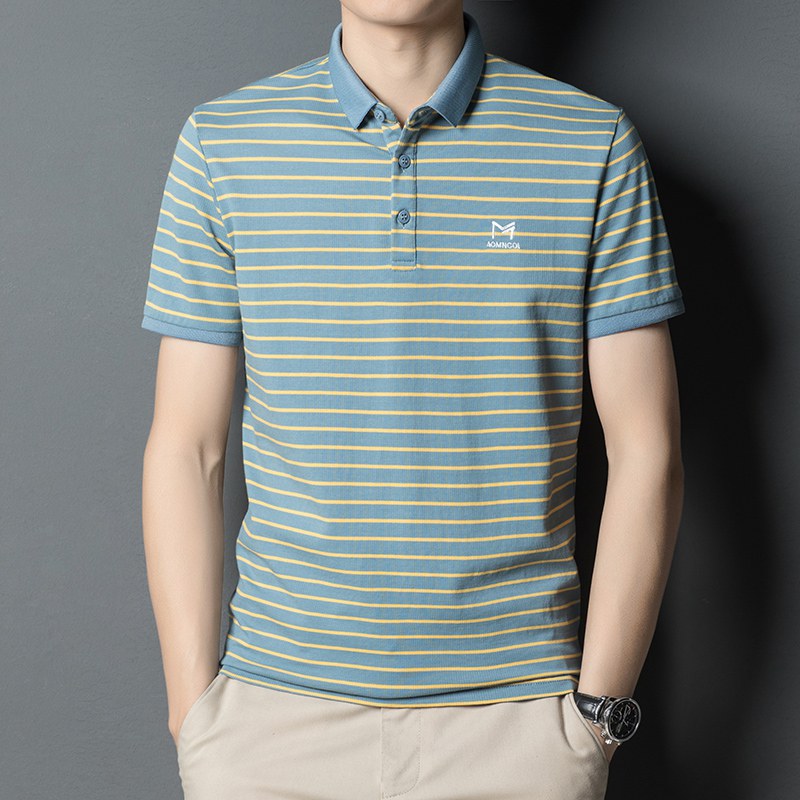 2022夏季潮流中青年短袖t恤男翻领条纹商务休闲polo衫