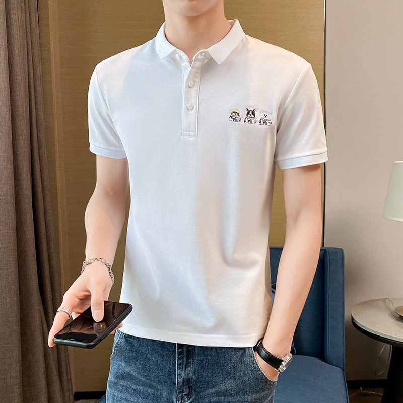 青年男轻商务POLO衫宽松潮流男装休闲刺绣短袖T恤潮牌