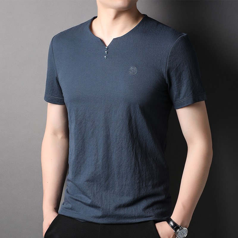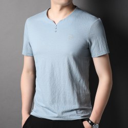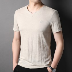 夏季新款短袖t恤男中国风圆领棉麻体恤爸爸装上衣