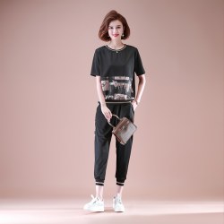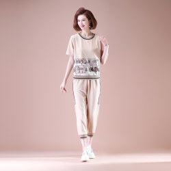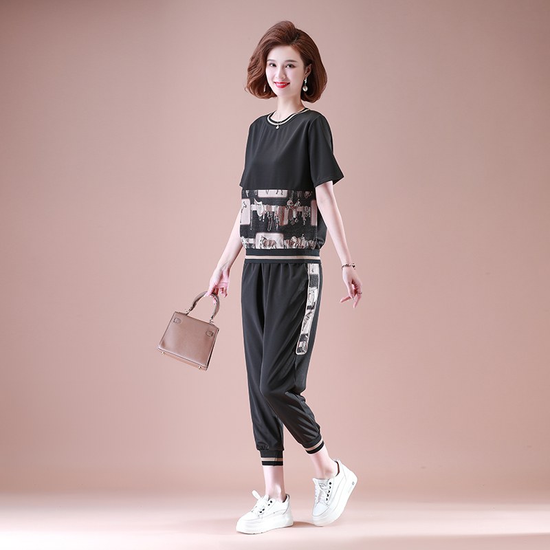 妈妈夏装运动套装夏减龄短袖上衣服洋气质妇女两件套