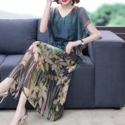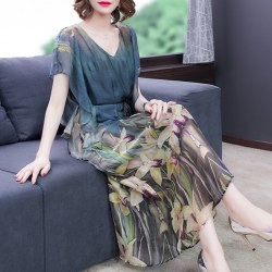 减龄真丝连衣裙夏女法式复古茶歇裙气质桑蚕丝碎花长裙