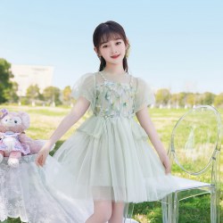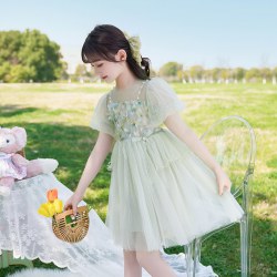 女童夏装裙子清甜花朵夏款网纱小女孩公主裙精致可爱连衣裙