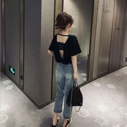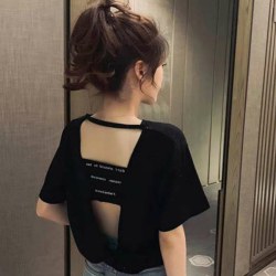 夏装新款韩版露背镂空短袖T恤女2022设计感时尚学生性感上衣