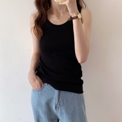 2022弹力螺纹针织吊带背心女夏外穿设计感小众打底内搭