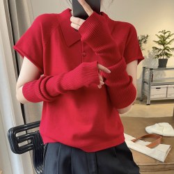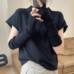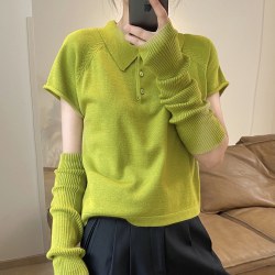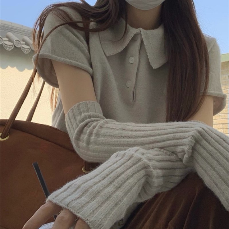 袖套毛衣女宽松短款短袖上衣2022春季学院风设计感小众针织