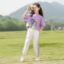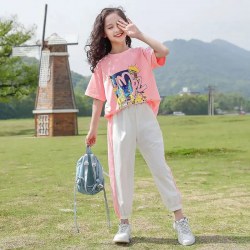 女童夏装套装2022洋气新款中大童卡通短袖儿童运动女孩薄款