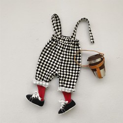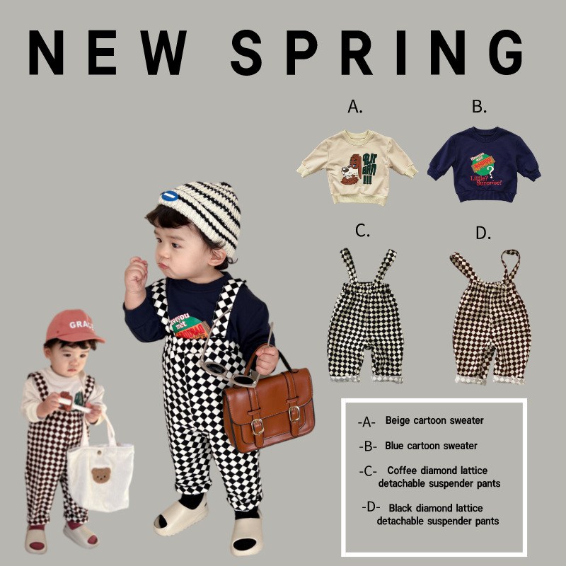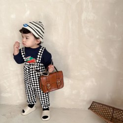 2022春新款男女宝宝卡通卫衣菱形格可拆卸背带裤