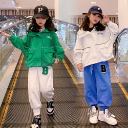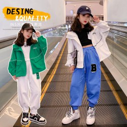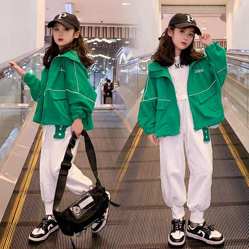 2022新款韩版中大童外套休闲裤两件套小女孩时髦童装