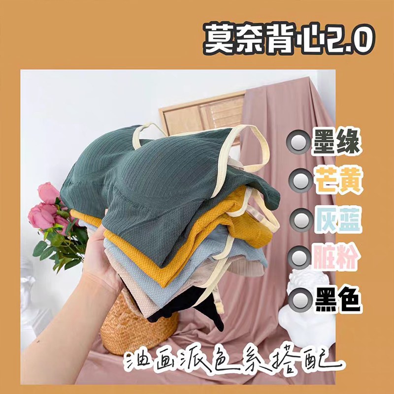 莫奈背心2.0纯色螺纹美背内衣女无缝性感V领打底衫内衣吊带
