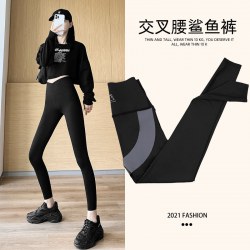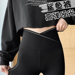 女交叉腰外穿鲨鱼裤 春秋薄款紧身瘦腿收腹外穿瑜伽芭比裤