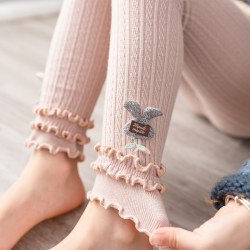 韩版双针两用裆花边配饰婴儿小童宝宝打底裤袜 3层木耳边九分裤