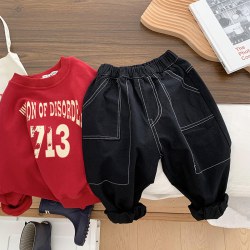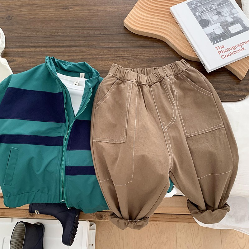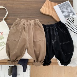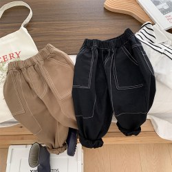 中小童装纯色拼接裤子儿童宽松长裤男女童宝宝休闲裤2022秋装新潮