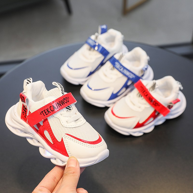 2022新款现货儿童休闲运动鞋镂空单网透气小白鞋发光LED灯宝宝鞋