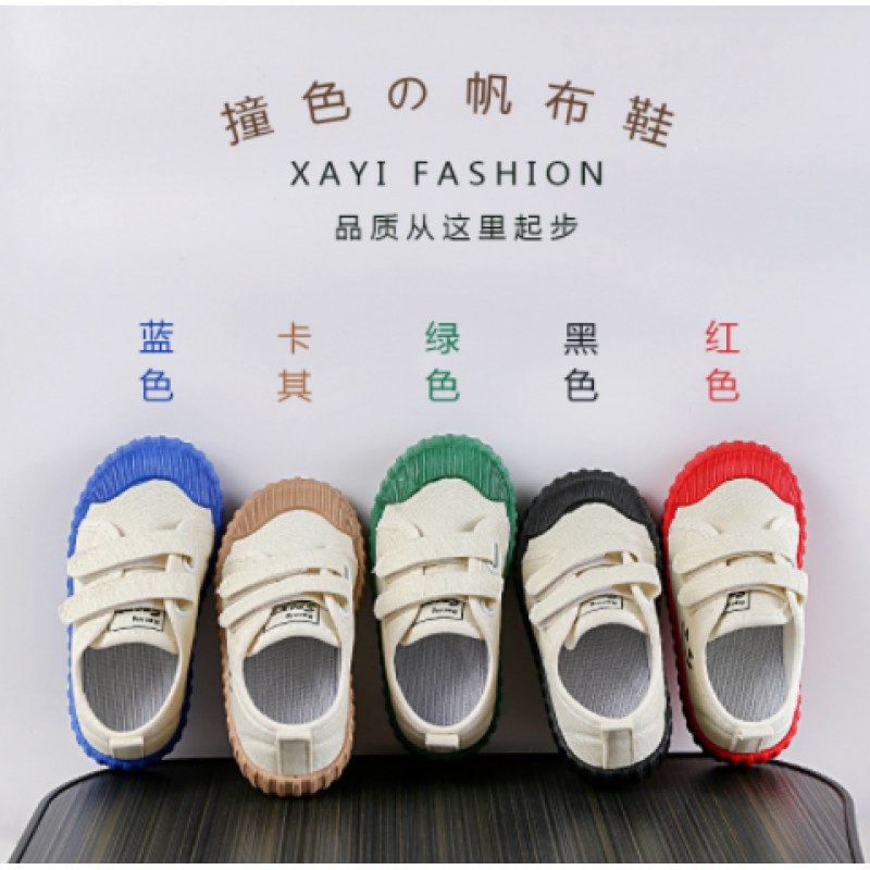 儿童帆布鞋春秋男童布鞋软底童鞋女童幼儿园室内魔术贴防滑透气鞋