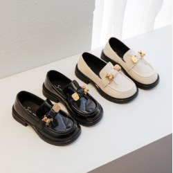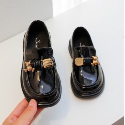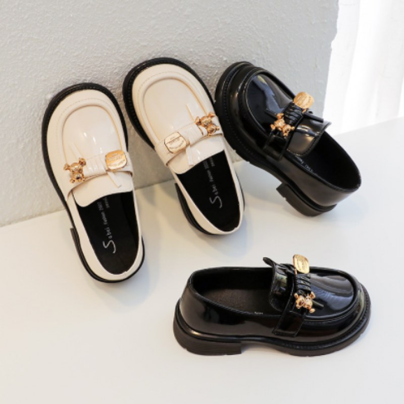韩版女童皮鞋小熊鸡心乐福鞋2022秋季新款学生公主小黑皮鞋潮